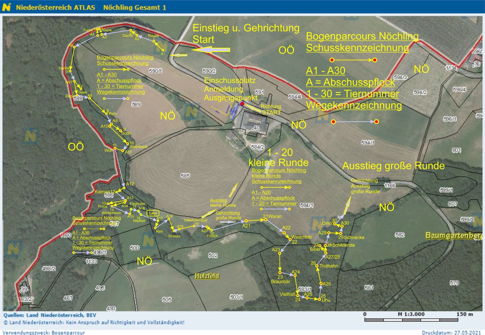 - Der Parcours darf nur in der vorgegebenen Richtung begangen werden.